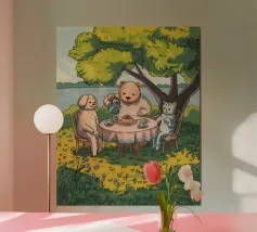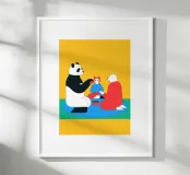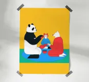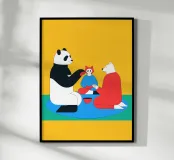 Amante degli animali? Questa illustrazione di panda e cane è la scelta perfetta per voi! Questo simpatico e colorato disegno è perfetto per un regalo o una collezione personale.