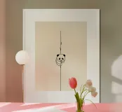 Line art minimalista di un panda seduto su un bambù Perfetto per gli amanti degli animali e per le decorazioni murali ispirate alla natura.