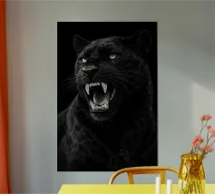 Quadro acrilico astratto moderno di una pantera nera in caccia.