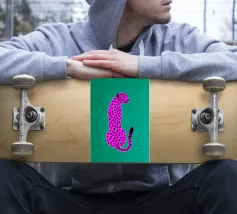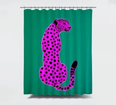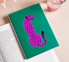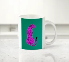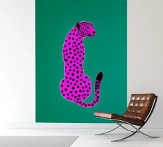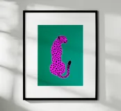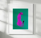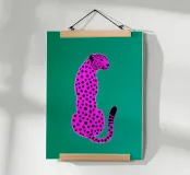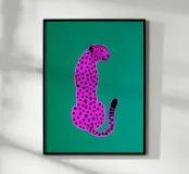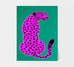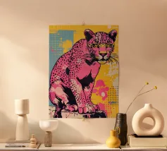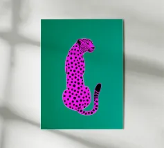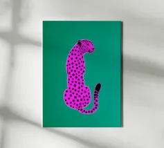 Questo poster è un vero e proprio colpo d'occhio: un leopardo stilizzato in rosa acceso con puntini neri su una ricca tonalità di verde. Lo stile grafico chiaro, combinato con forti contrasti, rende il motivo ideale per interni moderni e colorati. Per tutti coloro che amano la pop art, gli animali e il design audace.