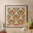 Fiore d'ispirazione moderna di metà secolo, con papaveri, foglie in grassetto e sfondo a griglia retrò nei toni smorzati dell'arancione, del verde e del beige.
