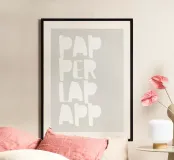 Tipografia giocosa in morbide aree bianche su uno sfondo grigio-beige: minimalista, affascinante e ammiccante. Quest'opera d'arte dona leggerezza e umorismo a qualsiasi ambiente e dimostra che il design può essere anche divertente. Un pezzo forte per chi ama le forme chiare e un pizzico di ironia.