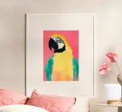 Porta un tocco di vivacità nella tua casa con questa stampa artistica "Parrocchetto 4". Realizzata con una cornice in legno di alta qualità, è perfetta per decorare il soggiorno o la camera dei bambini, rendendo ogni spazio più accogliente e colorato.