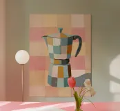 Scopri questo poster dal design unico "Patchwork Moka Pot". Perfetto per arredare la tua cucina con un tocco artistico e originale. Realizzato con materiali di alta qualità, è ideale per gli amanti del caffè e dell'arte contemporanea.