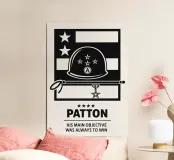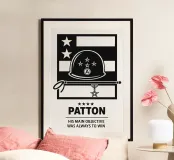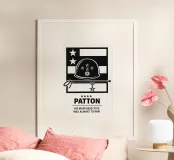 Stampa Patton, Poster cinematografico alternativo, Minimal, Arte da parete, Bianco e nero, Stampe di qualità, WW2, Medaglia dell'esercito, Bastone della spada, Regalo per i fan del cinema
