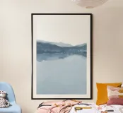 Paesaggio astratto nei toni del blu 1/2 poster con telaio in legno
