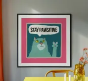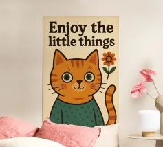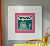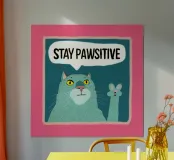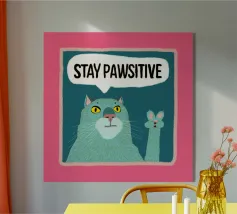 Illustration einer nicht sehr attraktiven Katze mit positiver Einstellung. Gemeinsam mir ihr kannst du dich für den Friedensgedanken in verrückten Zeiten stark machen. Das Motiv ist auf transparentem Hintergrund, so kannst du eigene Hintergundfarben wählen. Text kann auch hinzugefügt werden. Viele Freude beim Personalisieren!