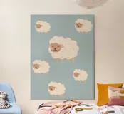 Adorabili stampe di pecore di ispirazione bohémien in morbide tonalità della terra, perfette per creare un'atmosfera accogliente e sognante in qualsiasi cameretta o stanza dei bambini. Un tocco giocoso di calma e comfort per la nanna e non solo.
