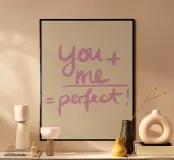 Scopri il nostro fantastico prodotto, perfetto per chi cerca un tocco di dolcezza nella propria casa! Questa stampa artistica con cornice in legno, dal design semplice e romantico, è ideale per arredare qualsiasi stanza. "You + me = perfect!" è un messaggio che celebra l'amore e l'amicizia, rendendolo un ottimo regalo per innamorati, amici o per te stesso. Con dimensioni di 15 x 20 cm, si adatta facilmente a vari spazi, dal soggiorno alla camera da letto. Aggiungi un po' di personalità ai tuoi ambienti con questo pezzo unico e originale!