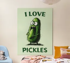 Aggiungete un tocco di fascino retrò al vostro spazio con questo poster di sottaceti in stile retrò! Con tre sottaceti verdi e vivaci in un design grafico audace e minimalista, questa opera d'arte unisce la nostalgia alla semplicità moderna. Questa opera d'arte presenta tre vivaci cetrioli verdi in un design minimalista e retrò, aggiungendo un tocco giocoso ma classico a qualsiasi stanza.