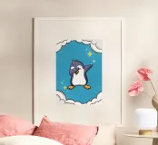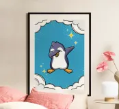Illumina la cameretta del tuo piccolo con questo divertente poster di un pinguino sorridente. Perfetto per ragazzi, è un'aggiunta giocosa e colorata all'arredamento della stanza.