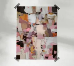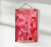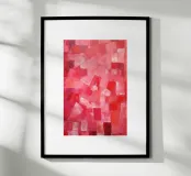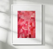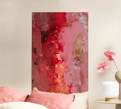 Una vibrante composizione astratta con forme geometriche sovrapposte in varie tonalità di rosso e rosa. I dettagli delle pennellate creano profondità e dinamismo, perfetti per gli appassionati di arte moderna.
