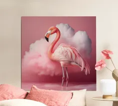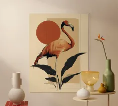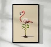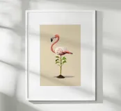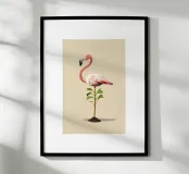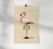 Illustrazione comica della rielaborazione dell'espressione "piedi ben piantati a terra". Utilizzando uno degli uccelli più affascinanti e statici in circolazione: il fenicottero.