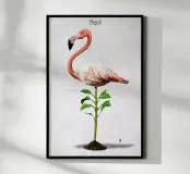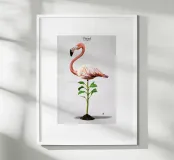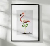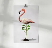 Comical illustration of the reworking of the expression, feet planted firmly on the ground. Using one of the more glamorous and static birds around; the flamingo