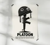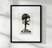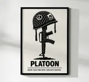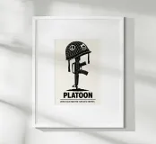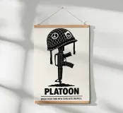 Stampa Platoon, Poster cinematografico alternativo, Minimalista, Arte da parete, Bianco e nero, Stampe di qualità, Fucile, Casco, Arte vettoriale, Regalo per fan del cinema