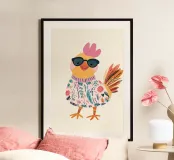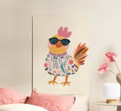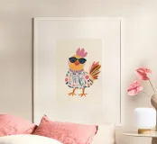 Pollo alla moda, stampa per cameretta, decorazioni murali per bambini