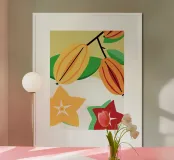 con carambole fresche ancora appese all'albero e pezzi a forma di stella.