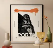 Dieses moderne Kunstwerk verbindet die historische Bedeutung der Porta Nigra mit einem zeitgemäßen, grafischen Design. Das Motiv zeigt einen markanten Ausschnitt des UNESCO-Weltkulturerbes in Trier, umgesetzt im pointillistischen Stil mit intensiven Kontrasten. Die Porta wird dadurch neu interpretiert – als Symbol für die Verbindung von Geschichte und Gegenwart. Im oberen Bereich bricht ein gesprühter, farbiger Strich die Monotonie des Schwarz-Weiß-Motivs auf und setzt einen dynamischen Akzent. Jeder der neun Drucke variiert in der Farbe des Strichs.