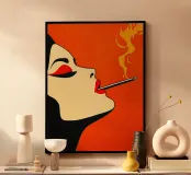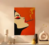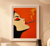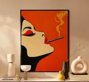 Quest'opera d'arte è un omaggio provocatorio all'epoca del glamour della metà del XX secolo. Lo stile grafico, con le sue linee pulite e i suoi colori contrastanti, ricorda l'estetica minimalista della Pop Art. Ispirato alle opere di Roy Lichtenstein, ma con un tocco più moderno, il poster è una potente rappresentazione dell'autonomia femminile e dello stile disinvolto. È una dichiarazione seducente per coloro che sfidano le regole.