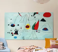 Joan Miró è stato un pittore, scultore e ceramista spagnolo nato a Barcellona nel 1893. Noto per il suo stile giocoso e fantasioso, Miró fondeva elementi del Surrealismo, del Dada e dell'arte astratta. Le sue opere sono spesso caratterizzate da colori audaci, forme organiche e immagini oniriche che riflettono una profonda connessione con il subconscio. L'arte di Miró sfidava le tecniche tradizionali e ha ispirato intere generazioni con il suo senso di libertà e creatività. È considerato uno degli artisti più influenti del XX secolo.