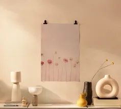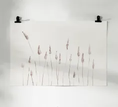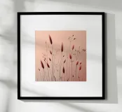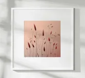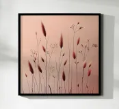 Strutture sottili, fiori delicati e fragili fili d'erba attraversano il quadro come vene in filigrana, creando una scena rasserenante e al tempo stesso profondamente commovente. Le tonalità dominanti del rosa conferiscono all'opera un'eleganza sobria e invitano lo spettatore a scoprire la bellezza nella semplicità. Questa composizione minimalista sussurra dolcemente la transitorietà della natura e la sottile ma potente bellezza che si nasconde in ogni momento della vita.