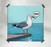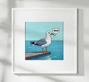 Il gabbiano sta chiamando, ma la sua voce è stata soffocata dall'acqua. Una rappresentazione divertente, che vale sempre la pena di guardare.