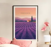 Design da viaggio provenzale decorativo e minimalista per chi ama i campi di lavanda del sud-est della Francia. Idea regalo ideale per chi ama viaggiare in Francia.