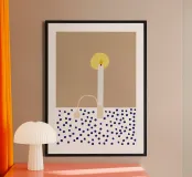 Minimalist poster with Scandinavian design classic candlestick in white on a dotted background. Clean and calm gives elegance and clarity.