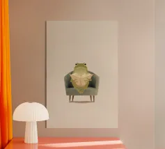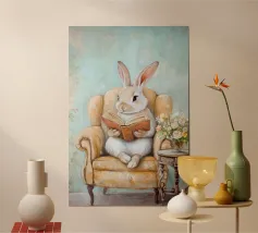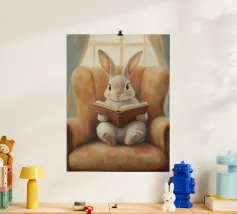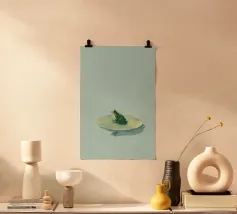 Quest'opera d'arte combina un'illustrazione figurativa minimale con una texture pittorica morbida per esplorare la calma intelligenza e l'introspezione. La forma semplificata e la composizione centrata enfatizzano l'immobilità, mentre la tavolozza di colori sobri crea un delicato ritmo visivo. Il soggetto antropomorfo introduce una sottile tensione narrativa senza simbolismi evidenti, consentendo all'atto della lettura di funzionare come una metafora visiva piuttosto che come una storia. Lo spazio negativo svolge un ruolo fondamentale, incorniciando la figura e rafforzando un senso di quieta concentrazione, equilibrio e presenza contemplativa.