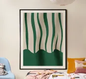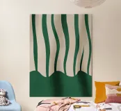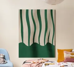 Una composizione minimalista di linee verticali morbide e fluide in verde intenso e in calde tonalità neutre. Il movimento delicato e la finitura strutturata creano un senso di ritmo ed equilibrio, mentre la tavolozza sobria aggiunge calma e raffinatezza. Quest'opera d'arte conferisce una struttura sottile e un calore agli interni moderni, scandinavi o contemporanei.