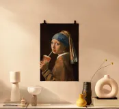 Solo una ragazza con un caffè freddo, oh sì, e che indossa orecchini di perle
