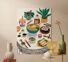 Tasty Colors è una collezione di illustrazioni originali e vivaci di Karoline, dedicata a risvegliare la gioia e l'appetito attraverso la vista. La nostra missione è iniettare colore, umorismo e modernità in ogni stanza della vostra casa. Cucina e aperitivo del mondo: Una celebrazione grafica dei vostri piatti e bevande preferiti! Se amate la cucina italiana (Spaghetti, Tiramisù), asiatica (Ramen), messicana (Taco, Guacamole) o i classici dell'aperitivo (Vino e formaggio, Cocktail, Fast Food), troverete l'opera d'arte da parete perfetta per la vostra cucina, sala da pranzo o zona bar. Le nostre stampe trasformano le pareti in invitanti inviti al piacere.