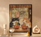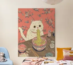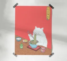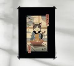 Il design "Ramentic" mostra due simpatici gatti che mangiano ramen insieme in Giappone. Perfetto per gli amanti dei gatti e del ramen: un regalo affascinante dal sapore estremo-orientale.
