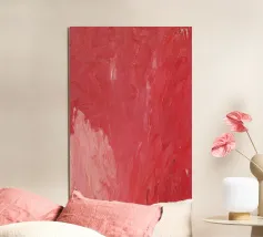 Quest'opera d'arte astratta contemporanea è incentrata sul colore come struttura ed emozione. Un campo rosso dominante si dispiega attraverso pennellate stratificate ed espressive, rivelando sottili cambiamenti di tono, pressione e movimento. Tracce di blush più chiaro emergono organicamente, attenuando l'intensità e aggiungendo profondità alla superficie. La texture visibile enfatizza l'atto fisico della pittura, trasformando il pigmento in ritmo e presenza. Minimale nella composizione ma ricca di materialità, l'opera evoca energia, calore e tranquilla tensione: un pezzo d'impatto per interni moderni.