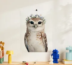 Gufo acquerellato con corona di fiori selvatici