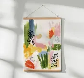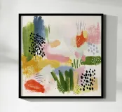 Una vibrante disposizione di forme sovrapposte in ricche tonalità retrò come il verde oliva, il giallo senape, il rosa arrossato, il rosso corallo e il nero profondo. Questo pezzo di ispirazione midcentury modern unisce il fascino dell'espressione astratta all'eleganza del minimalismo Art Déco. La finitura leggermente strutturata evoca le serigrafie d'epoca, rendendolo una dichiarazione di stile per gli interni contemporanei. Ideale per soggiorni, uffici o spazi creativi che cercano un punto focale audace ma equilibrato.