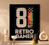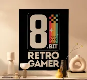 Retro Gamer Pixel 8 Bit - bianco poster con telaio in legno