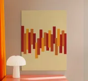 Questo design minimalista reimmagina il grafico a barre con un'estetica retrò e distintiva, fondendo la semplicità con un tocco di fascino vintage. Le sue linee pulite e la sua composizione equilibrata offrono una nuova prospettiva sulla visualizzazione dei dati, trasformando le informazioni in arte. Il pezzo suggerisce sottilmente progresso e ottimismo, rendendolo un complemento perfetto per chi apprezza le influenze moderne della metà del secolo e l'eleganza funzionale nel proprio arredamento. È una celebrazione della crescita in un formato visivamente accattivante.