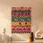 Un motivo colorato e intricato di forme geometriche, punti e linee disposti in bande orizzontali, che ricorda i tessuti bohémien o tribali.