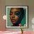 Ritratto di donna con sovrapposizioni geometriche di colori poster con telaio in plastica
