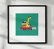 Scopri la magia del viaggio con la nostra stampa artistica "Road Trip"! Questo pezzo divertente e colorato, perfetto per i bambini e per gli amanti degli animali, porta un sorriso in ogni stanza. Con il suo design unico e vivace, questa print è ideale per la cameretta dei bambini, il soggiorno, o anche un'area di gioco. Non solo decora, ma stimola la fantasia, rendendolo un regalo perfetto per compleanni o altre occasioni speciali. Le immagini di un elefante, un leone, una zebra e una giraffa in viaggio trasmettono un messaggio di avventura e libertà. Disponibile in una dimensione comoda di 10 x 10 cm, è facile da appendere ovunque!
