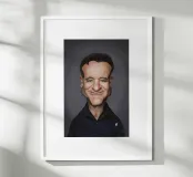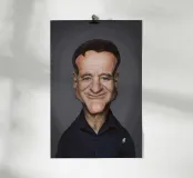Caricatura umoristica del noto attore, star del cinema e comico americano Robin Williams. Una delle caricature realizzate per la serie Celebrity Sunday, in cui un personaggio famoso viene ritratto in un giorno. L'idea è di mostrarli come in una fototessera per avere coerenza.