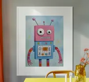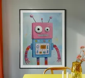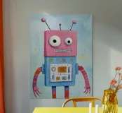 Introducete il divertimento e la creatività nello spazio del vostro bambino con questo giocoso robot da parete! Caratterizzata da un eccentrico robot rosa e blu con deliziosi motivi e dettagli espressivi, questa opera d'arte aggiunge un tocco di allegria a nursery, sale giochi o aule scolastiche. I suoi colori vivaci e il suo design affascinante ispirano l'immaginazione e illuminano qualsiasi stanza. Immaginate questo poster robotico colorato in una stanza dei giochi, che stimola la creatività in una classe o che arricchisce una cameretta con il suo fascino eccentrico. Il suo design versatile si adatta perfettamente agli stili di arredamento moderni e divertenti.