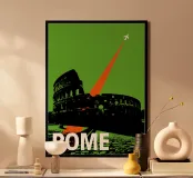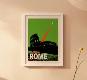 Retro Poster. Rom, Italien, Kolosseum, vintage, retro, grafische Kunst, Stadt, Reise, Illustrationen, Urlaub, Flugzeug, pop art, Büro, Kinderzimmer, Wohnzimmer, Schlafzimmer, Küche, orange, grün, schwarz weiß