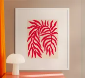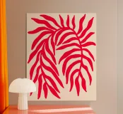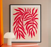 Poster botanico minimalista con un'unica sagoma di ramo rosso testurizzato su uno sfondo neutro. Questo design moderno ispirato alla natura fonde forme organiche e contrasti sorprendenti, perfetto per interni in stile contemporaneo, scandinavo o giapponese alla ricerca di un'elegante semplicità e calma.
