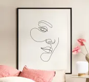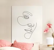 Disegno a linee continue minimalista e astratto di un volto femminile