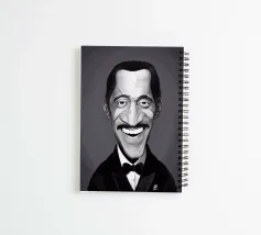 Illustrazione caricaturale umoristica del noto attore americano e hollywoodiano, star del grande schermo e crooner; Sammy Davis Jnr. Una delle caricature realizzate per la serie Celebrity Sunday, in cui un personaggio famoso viene ritratto in un giorno. L'idea è di mostrarli come in una fototessera per avere coerenza.