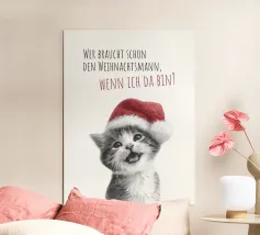 Un allegro gatto dei cartoni animati, vestito con un cappello da Babbo Natale, agita le zampe eccitato. La frase "Artigli di Babbo Natale" è scritta in grassetto a lettere rosse intorno al gatto.