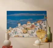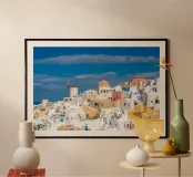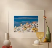 Santorini Glow poster con telaio in legno