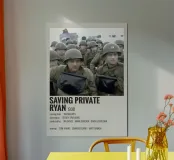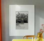 Stampa artistica incorniciata in legno con design minimalista ispirato al film Saving Private Ryan del 1998. Perfetta come decorazione per soggiorno o camera da letto, ideale per appassionati di cinema e collezionisti di poster vintage. Realizzata con materiali di alta qualità, garantisce durata e un look elegante per ambienti moderni.